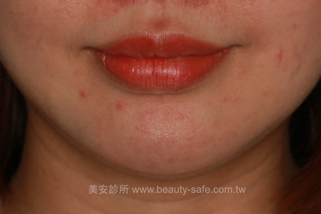 - 矽膠本身無法與組織結合,會慢慢形成莢膜造成孿縮,也就是墊完下巴一、二年後會發覺矽膠膜的形狀愈來愈明顯。