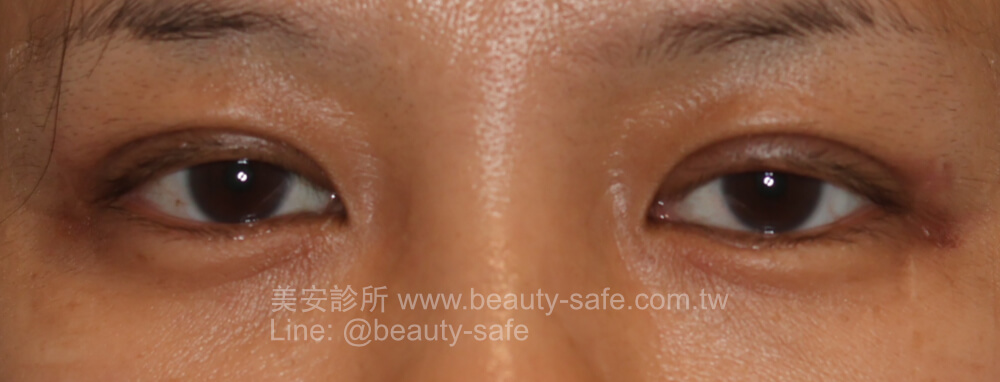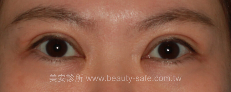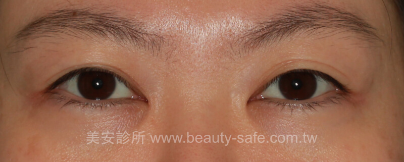 接下來介紹一位特殊案例:醫師的縫雙眼皮技術自認已經相當成熟而且持久,但偶而也會失手,底下這位小姐在美安診所縫雙眼皮二年後有消失的跡象讓她擔心的要死,因為她是上大學那個暑假縫的,術後相當自然,她的大學同學都一直以為她天生雙眼皮。結果最近一、二個月雙眼皮好似要消失,讓她很緊張趕著在期末考前來咨詢。雖然外面縫雙眼皮一年後消失的人所在多有,但對美安的醫師而言卻是罕見結果,因此答應讓她以折扣價割雙眼皮。